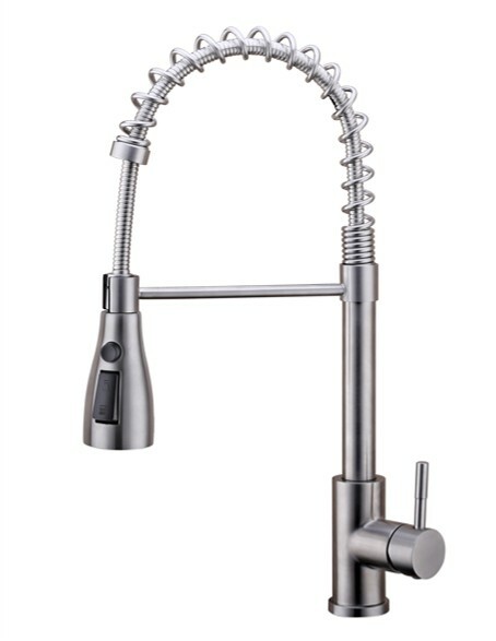 MONOMANDO PARA FREGADERO EN ACERO INOXIDABLE CON MANGUERA EXTRAÍBLE Y ROCIADOR (INCLUYE CUBIERTA)